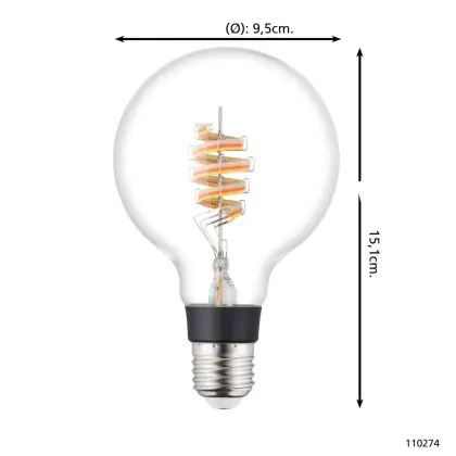 Eglo Connect.Z Smart LED Globe E27 Filament Clear 4.9W 400lm - 830 Warm White + RGB | Dimmable - Replaces 40W