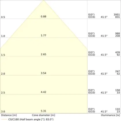 The colour code is a combination of colour rendering (CRI) and light colour (Kelvin). The first number indicates the colour rendering (1 = very poor colour rendering, 9 = maximum colour fastness). The second and third number contains the light colour. Example: the colour code 830 consists of good colour rendering (8) and warm white light (3000K). |