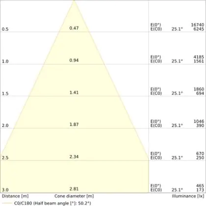 The Luminous Efficacy (lm/W) indicates how efficiently a light source uses energy. We divide the number of lumens by the wattage. The higher the number, the more efficient a product is in terms of energy consumption. LED lighting has a considerably higher lumen/Watt ratio than conventional lighting.