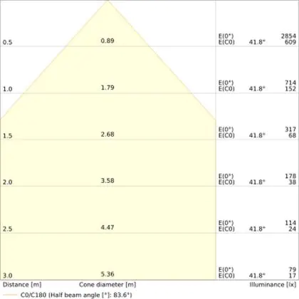 The colour code is a combination of colour rendering (CRI) and light colour (Kelvin). The first number indicates the colour rendering (1 = very poor colour rendering, 9 = maximum colour fastness). The second and third number contains the light colour. Example: the colour code 830 consists of good colour rendering (8) and warm white light (3000K). |