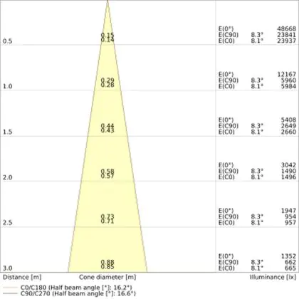 A beam angle indicates the angle of the light beam coming from a light source. The smaller the radiation angle in degrees (D), the narrower the beam angle.