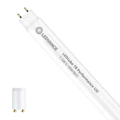Ledvance LED Tube T8 Performance (EM/Mains) Ultra Output 7.5W 1100lm - 865 Daylight | 60cm - Dimmable - Replaces 18W
