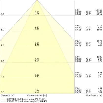 The colour code is a combination of colour rendering (CRI) and light colour (Kelvin). The first number indicates the colour rendering (1 = very poor colour rendering, 9 = maximum colour fastness). The second and third number contains the light colour. Example: the colour code 830 consists of good colour rendering (8) and warm white light (3000K). |