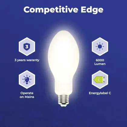 Every bulb or fixture has an energy efficiency class A to G. Energy label A is the most efficient and G the least. LED lighting is the most sustainable lighting technique. Even if a LED bulb is rated E or lower, they still save 70% of energy compared to conventional lighting with the same energy label. Why is it the same label then? To motivate LED brands to get even more durable.