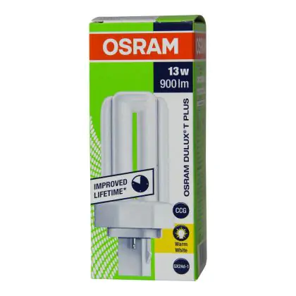 Also, the Osram DULUX T 13W/830 PLUS GX24d-1 Lumilux Warm White lifespan is very long, up to 8000 hours. These lamps are also very energy efficient, they have an energy label classified A.