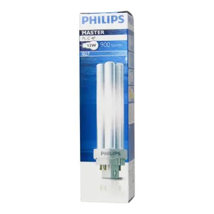 Philips PL-C 4P are compact fluorescent lamps, with separate power supplies, without a starter or capacitor. This model is equipped with a 4 pin socket and is very energy efficient. Philips PL-C 13W 827 4P measure 850 cm and have a G24q-1 socket type, which corresponds to a socket with 4 pins.