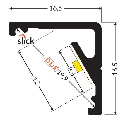 Topmet LED Profile CABI12 E slide - 1m - Complete set - Aluminium raw alu.